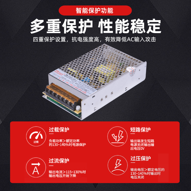 48V開關(guān)電源是一種通過高頻開關(guān)技術(shù)將交流電轉(zhuǎn)換為直流電的電源設(shè)備,具有高效率、體積小、重量輕等特點,廣泛應(yīng)用于通信設(shè)備、工業(yè)自動化、LED照明等領(lǐng)域?