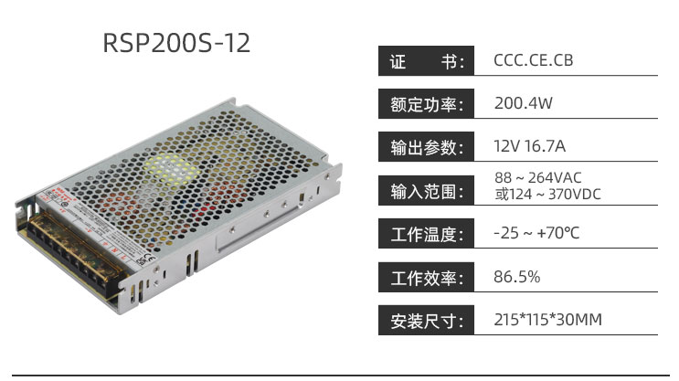 RSP200W開(kāi)關(guān)電源功能特點(diǎn):1.國(guó)際通用全范圍交流輸入
