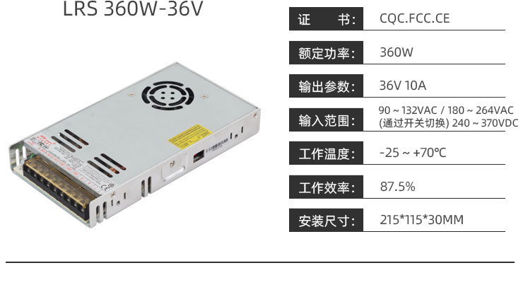 36V開關(guān)電源LRS15360W詳細(xì)說明: