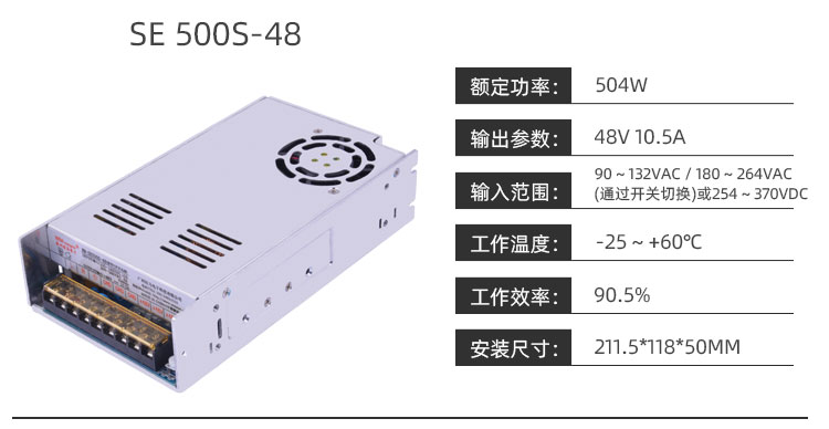 大功率定制款:提供500W高功率輸出,支持48V/10.5A工業(yè)電源定制服務(wù),可滿足高負(fù)載需求。