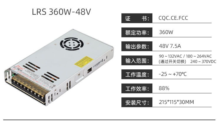 體積小、重量輕:相較于傳統(tǒng)電源,48V開關(guān)電源更易于安裝和布置,適合空間有限的應(yīng)用場合。