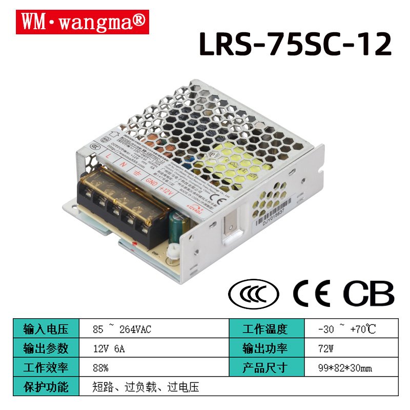 | WM-LRS75SC-12 | 12V DC | 6.3A | 10.8~13.2V |
