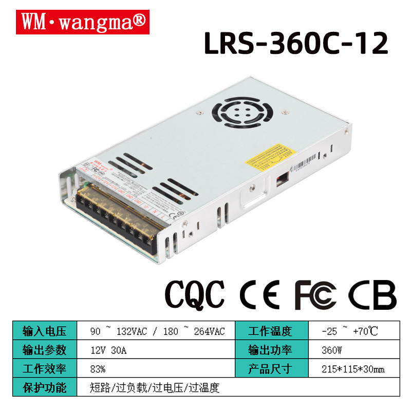 型號矩陣:WM-LRS360C-5/12/24/36/48V(標準單路輸出,適配不同設備)