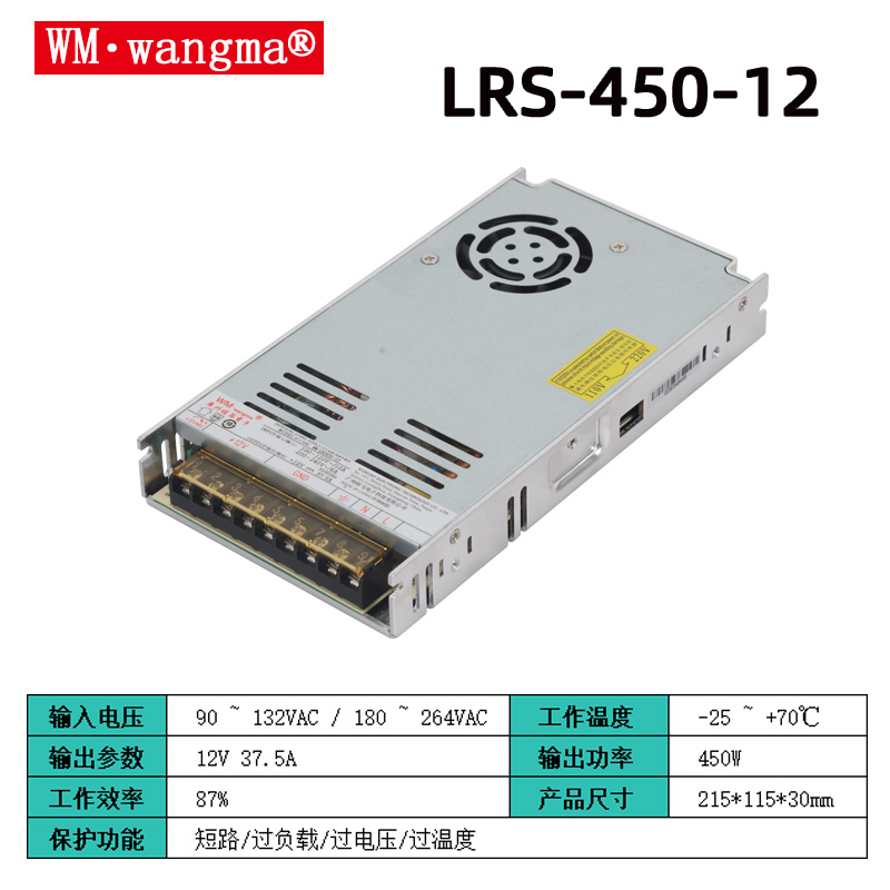 二、LRS-450開關(guān)電源核心性能與保護(hù)功能